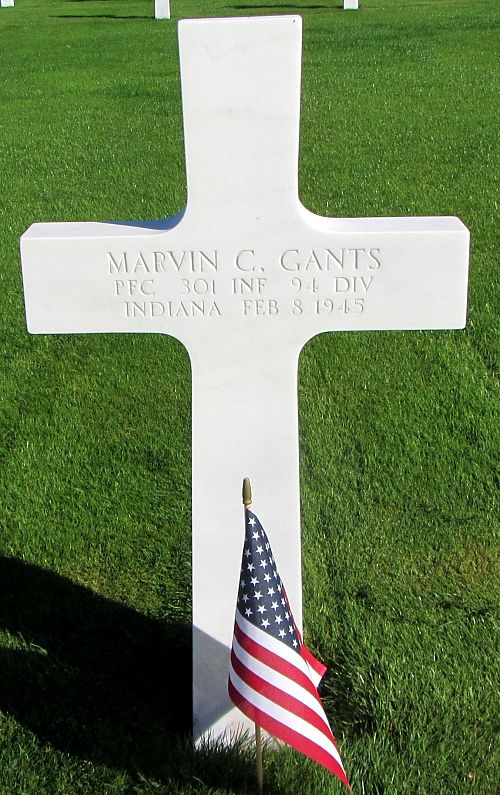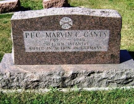 Pfc Marvin C. Gants attended high school for 2 years before he enlisted in Indianapolis, Indiana on 7 December 1942.He is remembered at the Fairview Cemetery in Tipton, Tipton County, Indiana.