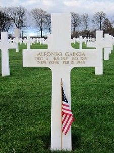 T/4 Alfonso Garcia attended high school for one year and was a musician in the Juanita's Rumba Band before he enlisted in New York City, New York on 27 March 1941.He joined his unit from the 38th Replacement Battalion on 15 February 1945.
