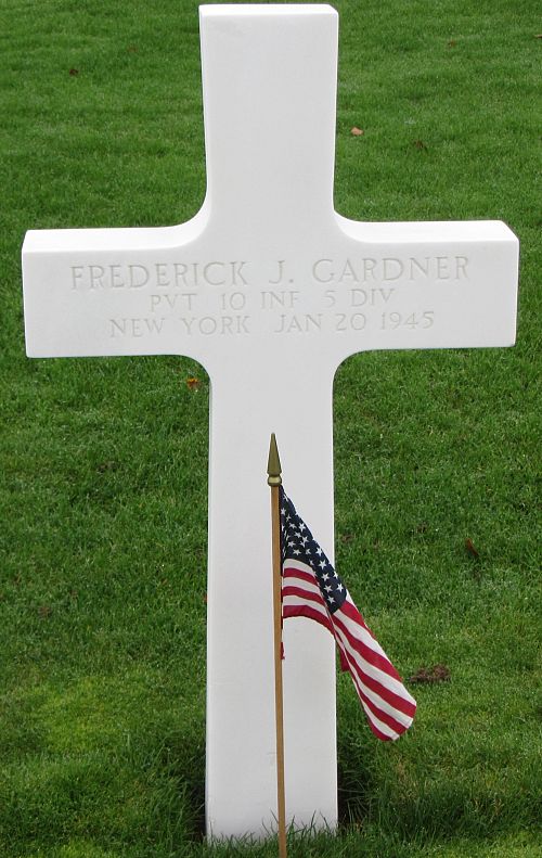Pvt Frederick J. Gardner entered the service at Fort Dix, New Jersey on 26 June 1944.Source of information: Leo Minne, www.abmc.gov, www.wwiimemorial.com, www.archives.gov – WWII Enlistment Record, www.ancestry.com – Headstone and Interment Record, A footsoldier for Patton / Michael C. Bilder James G. Bilder, The 5th Infantry division in the ETO