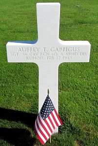 Sgt Aubrey T. Garrigus attended high school for four years and was employed at the Carnegie Steel Corporation before he enlisted in Chicago, Illinois on 27 March 1942.Sgt Garrigus, who previously had lost an eye in combat, insisted on rejoining his unit.