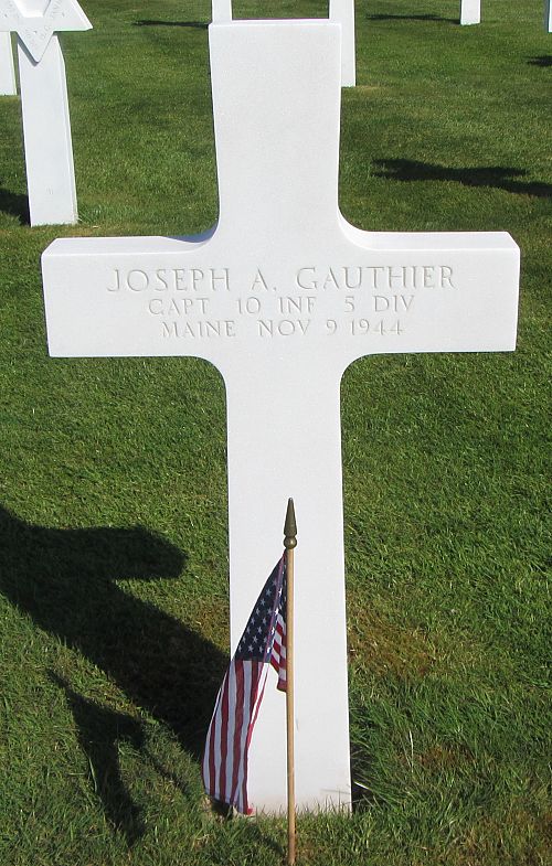 Capt. Joseph H. Gauthier was a sales clerk before he joined the National Guard on 24 February 1941.Source of information: Leo Minne, www.abmc.gov, www.wwiimemorial.com, www.archives.gov – WWII Enlistment Record, www.ancestry.com – 1920/1930/1940 Census / U.S. Headstone and Interment Record for U.S. Military Cemeteries on Foreign Soil 1942-1949 / Phylis Thompson Family Tree, A footsoldier for Patton / Michael C. Bilder James G. Bilder, The 5th Infantry division in the ETO