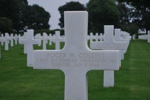 S/Sgt Roger W. Collins was a graduate of Fenwick High School and played baseball with the "Friars". While attending St. Benedict college at Atkinson, Kansas, he volunteered for the Air Corps of the Army of the United States in Chicago, Illinois on 23 October 1942. He was sent overseas in October 1943.The plane #42-31538 collided with plane #42-31236 after being attacked by a FW 190 of II/JG26.