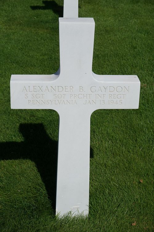 S/Sgt Alexander B. Gaydon was a stock clerk at Sears Roebuck Company before he enlisted in Philadelphia, Pennsylvania on 12 January 1943.He was first buried at the Temporary American Military Cemetery in Grand-Failly, France.