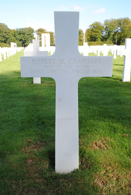 Pvt. Robert M. Gearhart enlisted at Ft. Thomas Newport, Kentucky, on 1 June 1944.Source of information: Leo Minne, www.abmc.gov, www.wwiimemorial.com, www.archives.gov – WWII Enlistment Record, www.ancestry.com - U.S. Headstone and Interment Record
