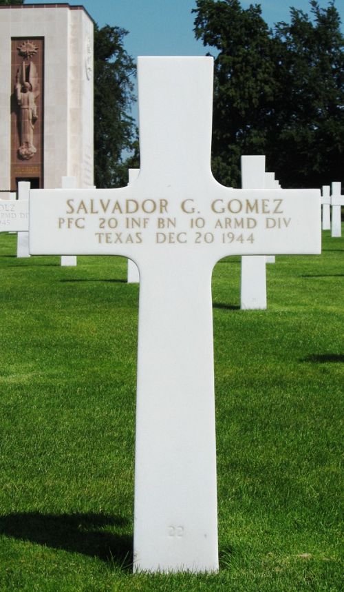 Pfc Salvador G. Gomez attended high school for one year and was a nursery and landscaping laborer before he enlisted in Houston, Texas on 25 November 1942.Source of information: Peter Schouteten, www.abmc.gov, www.wwiimemorial.com, www.archives.gov – WWII Enlistment Record, www.ancestry.com - Headstone and Interment Record / U.S. WWII Draft Cards Young Men / 1940 Census, www.10tharmored.com