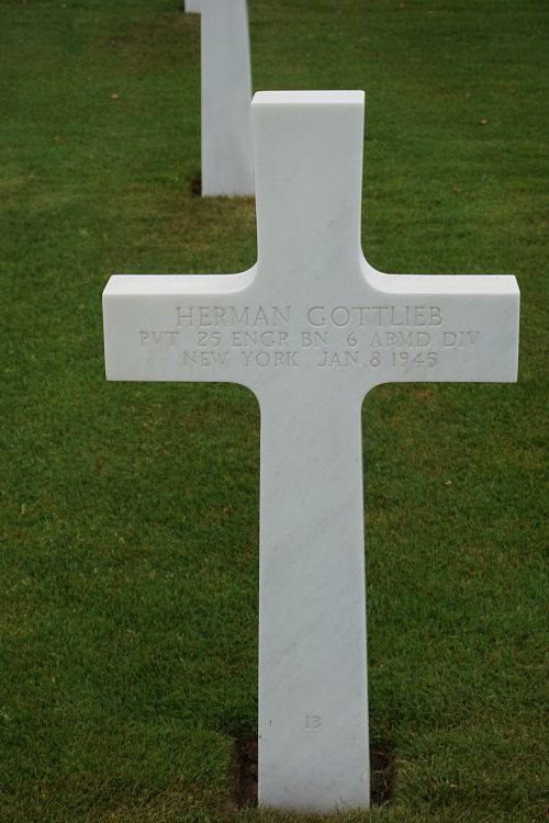 Pvt Herman Gottlieb attended high school for one year before he enlisted at Fort Jay, New York on 11 April 1942.He died in a field hospital to the effects of wounds, caused by artillery shell fragments.