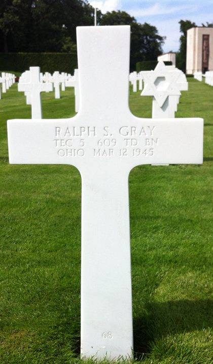 T/5 Ralph S. Gray worked on a farm before he enlisted at Fort Haynes, Ohio on 2 August 1941.Source of information: Peter Schouteten, www.abmc.gov, www.wwiimemorial.com, www.archives.gov, www.ancestry.com - Headstone and Interment Record / U.S. WWII Draft Cards Young Men / Gray Family Tree, www.tankdestroyer.net, www.findagrave.com - Grave Content / Monte Harding
