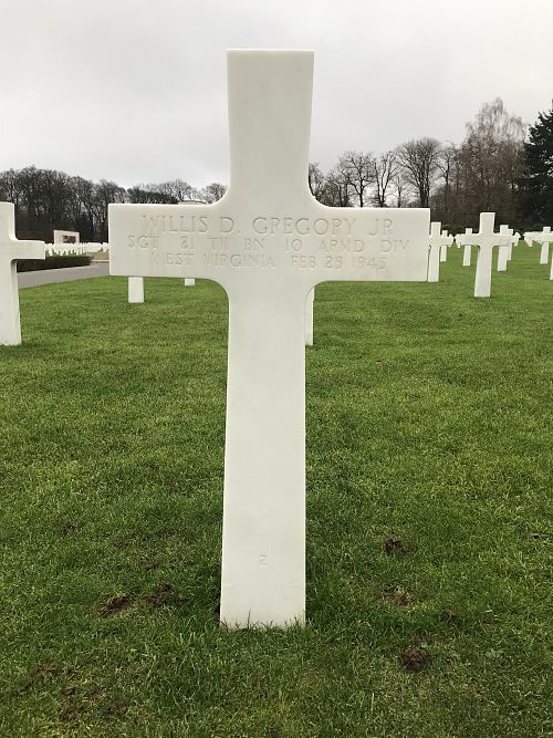 Sgt Willis D. Gregory Jr. attended high school for four years and was employed at the Berkeley Wollen Mill Corporation.He enlisted in Clarksburg, West Virginia on 27 October 1942. He was killed by an artillery shell.