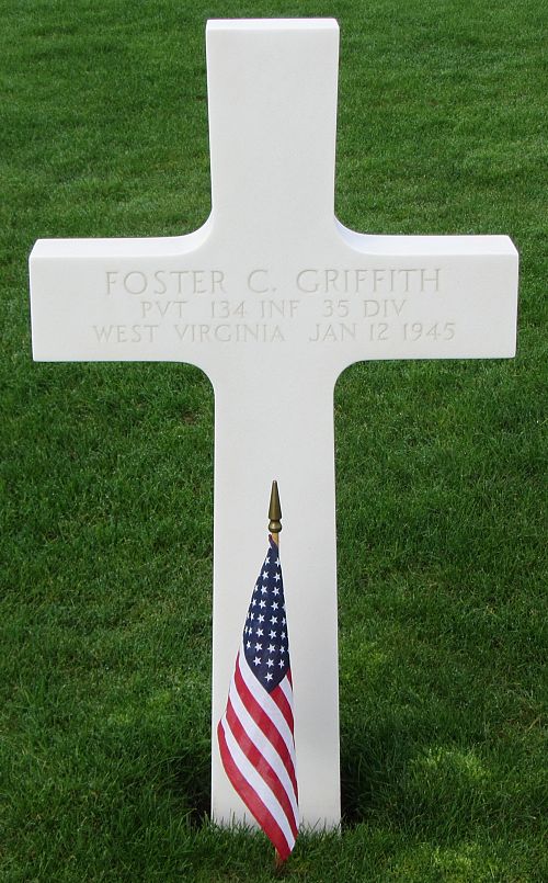 Pvt Foster C. Griffith attended high school for two years and was employed at the Kanawha County School Board before he enlisted at Fort Thomas, Kentucky on 13 April 1944.He was killed by small arms fire.