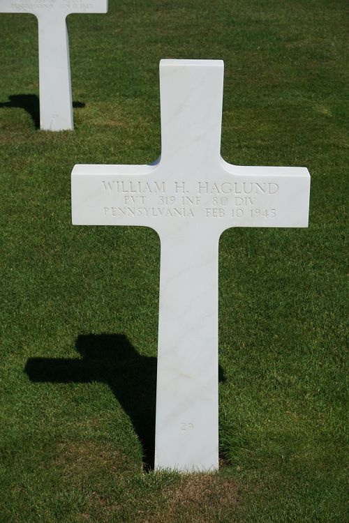 Pvt William H. Haglund was a student when he enlisted in Erie, Pennsylvania on 30 August 1944. He was sent overseas on 13 January 1945.He joined his unit from the 17th Replacement Battalion on 5 February 1945.