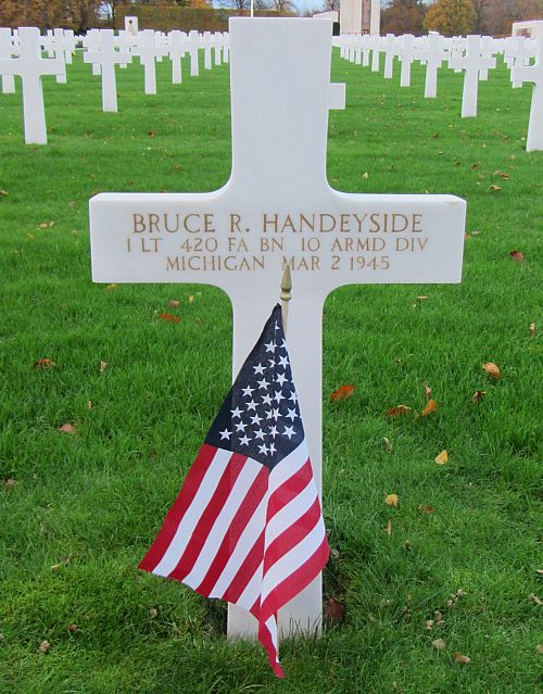 1st Lt Bruce R. Handeyside attended college for four years and was a bookkeeper and cashier before he enlisted in Detroit, Michigan on 14 June 1941.He is remembered at the Glenwood Cemetery in Wayne, Wayne County, Michigan