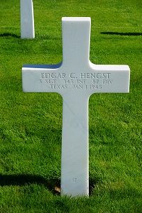 S/Sgt Edgar C. Hengst attended high school for four years before he enlisted in Houston, Texas on 11 February 1943.He was first buried at the Temporary American Military Cemetery in Grand Failly, France.