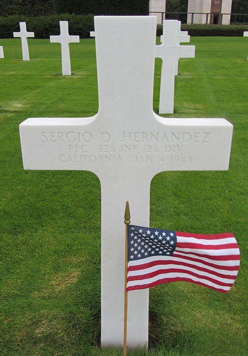 Source of information: Peter Schouteten, www.abmc.gov, www.wwiimemorial.com, www.archives.gov - WWII Enlistment Record, www.ancestry.com - Headstone and Interment Record / U.S. WWII Draft Cards Young Men / Hernandez Family Tree / 1930/1940 Census / U.S. WWII Hospital Admission Card Files, www.fold3.com - 26th Infantry Division