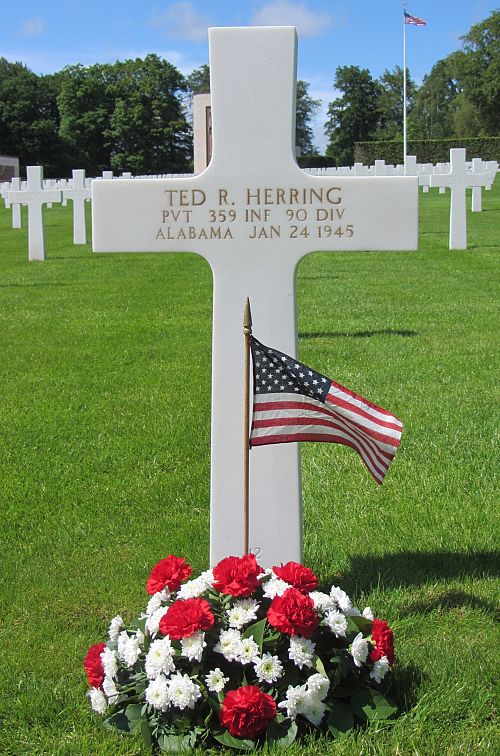 Pvt Ted R. Herring attended high school for 3 years and worked on a farm before he enlisted at Fort McPherson Atlanta, Georgia on 21 June 1944.Source of information: Peter Schouteten, www.abmc.gov, www.wwiimemorial.com – Douglas Herring, www.archives.gov – WWII Enlistment Record, www.ancestry.com - Headstone and Interment Record / 1940 Census / U.S. WWII Draft Cards Young Men / Alabama County Marriage Records