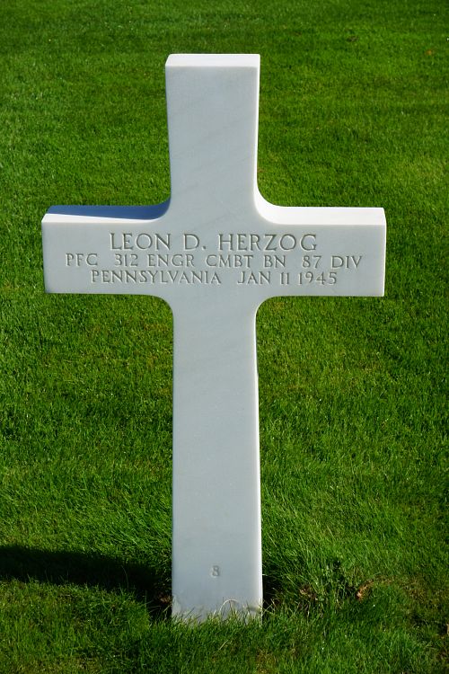 Pfc Leon D. Herzog attended high school for two years before he enlisted in Allentown, Pennsylvania on 10 February 1943.The explosives used in the mines planted by the engineers were known by chemists and engineers to explode spontaneously if it became cold. The planners had no intention of using the mines in a cold climate, but they expected the war in Europe to be over before the winter of 1944. 24 Members of A Company were inside a building receiving instruction about placing mines, when the mines exploded, destroying the building they were in and two buildings to the left. The explosion was heard seven miles away.