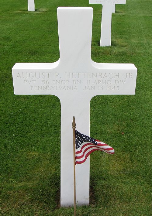 Pvt August P. Hettenbach attended high school for four years and was a construction foreman.Source of information: André Koch, www.abmc.gov, www.wwiimemorial.com, www.archives.gov - WWII Enlistment Record, www.ancestry.com - 1920/1930/1940 Census / U.S. WWII Draft Cards Young Men / Pennsylvania, Birth Certificates / Pennsylvania, Veteran Compensation Application Files, http://11tharmoreddivision.com