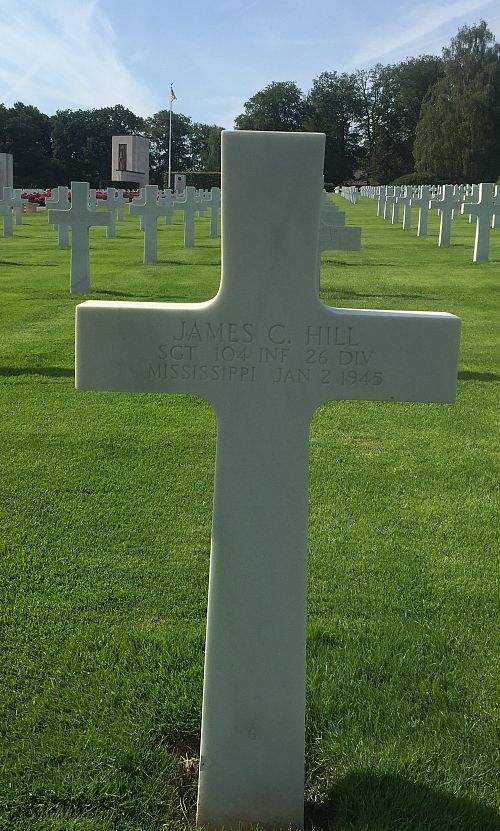 Sgt James C. Hill attended high school for two years and was a maintenance painter before he enlisted at Camp Shelby, Mississippi on 22 November 1943.Source of information: Peter Schouteten, www.abmc.gov, www.wwiimemorial.com, www.archives.gov - WWII Enlistment Record, www.ancestry.com - U.S. WWII Draft Cards Young Men, www.fold3.com - 26th Infantry Division