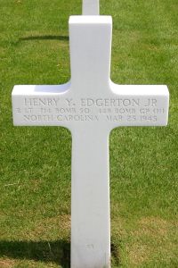 2nd Lt Edgerton graduated from Central High School with the class of 1942 and attended North Carolina State College.In a statement on 19 September 1945, a surviving crew member, 2nd Lt Gottlieb, declared that the airplane was attacked by German jet-propelled fighters over Dömitz. At the time he bailed out of the burning bomber, the interphone had been shot out of commission, and no bail-out order could have been heard anywhere on the plane had one been given. The plane exploded almost immediately after he left it.