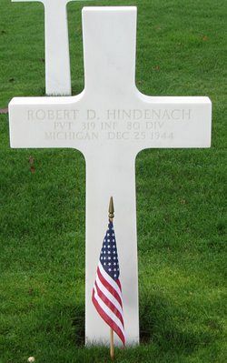 Pvt Robert D. Hindenach was employed by A. J. Hannah when he enlisted on 30 June 1942.He was killed by small arms fire.
