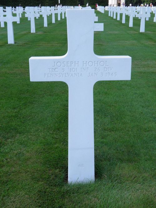 T/5 Joseph Hohol was a baker at Irrmans Bakery.He enlisted in Wilkes Barre, Pennsylvania on 14 July 1943. He received his basic training at Camp Fannin and was sent overseas in September, 1944.