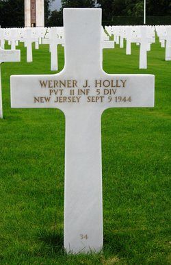 Pvt Werner J. Holly graduated from Madison High School and was employed at his father's business.He enlisted in Harrodsburg, Kentucky on 27 August 1942 and was sent overseas in August 1944.