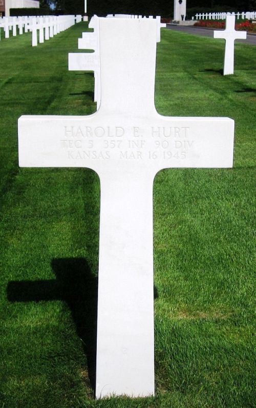 T/5 Harold E. Hurt attended high school for 4 years and was a sales clerk before he enlisted at Fort Leavenworth, Kansas on 10 Decmeber 1943.Source of information: Peter Schouteten, www.abmc.gov, www.wwiimemorial.com, www.archives.gov - WWII Enlistment record, www.ancestry.com - Headstone and Interment Record / Johann P. Herrmann Family Tree / 1920/1930 Census / U.S. WWII Draft Cards Young Men, www.findagrave.com - Have Paws will travel