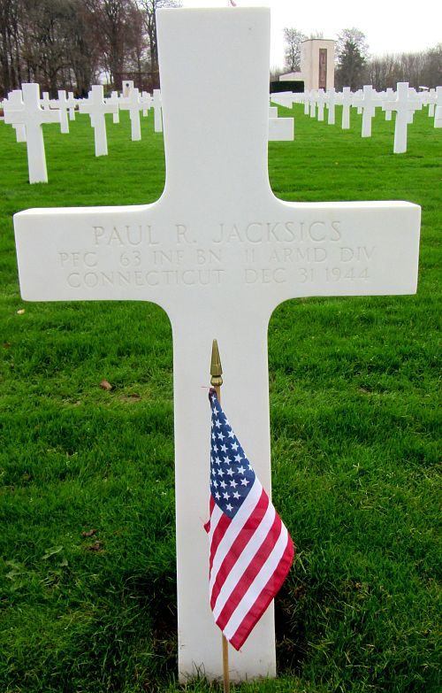 Pfc Paul R. Jacksics enlisted in Hartford, Connecticut on 1 May 1942.Source of information: André Koch, www.abmc.gov, www.wwiimemorial.com, www.archives.gov - WWII Enlistment Record, www.ancestry.com - Headstone and Interment Record / 1930/1940 Census / U.S. WWII Draft Cards Young Men 1940-1947, http://www.11tharmoreddivision.com