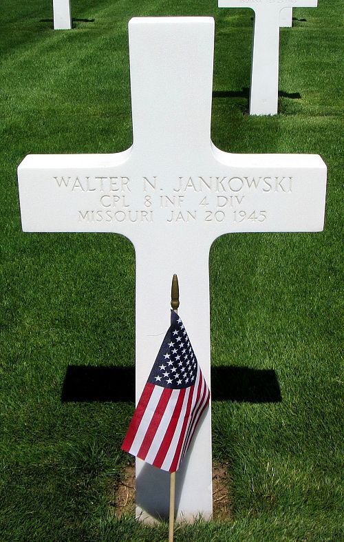 Cpl Walter N. Jankowski enlisted at Jefferson Barracks, Missouri on 29 December 1942.Source of information: Peter Schouteten, Danny van der Groen - Company's / 4ID After Action Reports, www.abmc.gov, www.wwiimemorial.com, www.archives.gov - WWII Enlistment Record, www.ancestry.com - Headstone and Interment Record / WC Johnson or MM Coy Families Tree