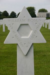 Pvt Rosen was initially buried as Unknown X-81 at the Temporary American Military Cemetery of Foy, Belgium. After identification he was reburied at the same Temporary Cemetery before his remains were evacuated to Henry-Chapelle.Source of information: Peter Schouteten, www.wwiimemorial.com, www.ancestry.com - U.S. WWII Draft Cards Young Men