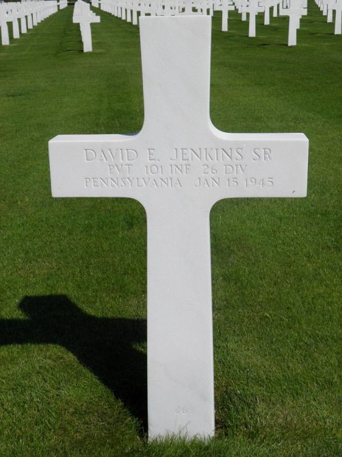 Pvt David E. Jenkins Sr. graduated from Mahonoy Township High School and was employed as a truck driver for Park Crest Lumber Company.He enlisted in Allentown, Pennsylvania on 21 December 1943 and was sent overseas in September 1944.