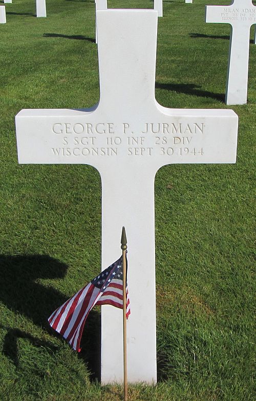 S/Sgt George P. Jurman attended high school for three years and was a bartender before he enlisted in Milwaukee, Wisconsin on 14 September 1942.Source of information: Peter Schouteten, www.abmc.gov, www.wwiimemorial.com, www.archives.gov – WWII Enlistment Record, www.ancestry.com - Headstone and Interment Record / Kellner Family Tree, WWII Draft Card