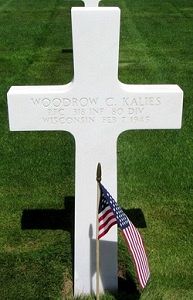 Pfc Woodrow C. Kalies attended high school for four years and worked in a slaughterhouse before he enlisted.Source of information: Leo Minne, www.abmc.gov, www.wwiimemorial.com, www.ancestry.com - 1930/1940 Census / Headstone and Interment Record / U.S. WWII Hospital Admission Card File / U.S. WWII Draft Cards Young Men, www.80thdivision.com