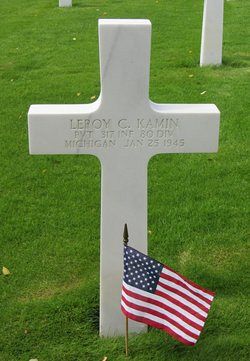 Pvt Leroy C. Kamin was an employee by the Enos Foundry before he enlisted on 30 June 1942.Source of information: Leo Minne, www.abmc.gov, www.wwiimemorial.com, www.ancestry.com – 1930/1940 Census / Headstone and Interment Record / U.S. Draft Cards Young Men, www.findagrave.com, www.80thdivision.com