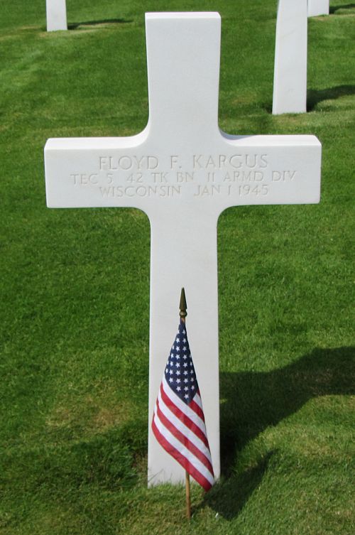 T/5 Floyd F. Kargus enlisted in Milwaukee, Wisconsin on 19 October 1942.Source of information: André Koch, www.abmc.gov, www.wwiimemorial.com, www.archives.gov - WWII Enlistment Record, www.ancestry.com - Headstone and Interment Record / 1930/1940 Census / U.S. WWII Draft Cards Young Men 1940-1947, http://www.11tharmoreddivision.com