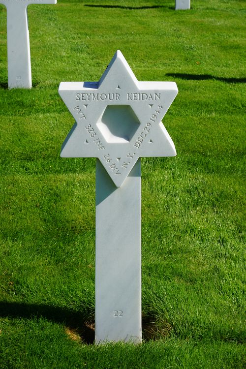 Pvt Seymour Keidan graduated from Lafayette College in 1941 before he enlisted at Fort Jay, New York on 16 June 1942.He was killed by artillery shell fragments in the stomach and body.