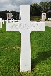 Pvt Sheridan J. Keith enlisted in Altoona, Pennsylvania on 5 April 1943.He was first buried at the Temporary American Military Cemetery of Grand Failly, France.