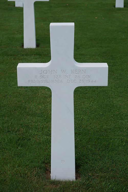 T/Sgt John W. Kern attended high school for four years and was a lithographer at the Dando Schaff Company before he enlisted in Philadelphia, Pennsylvania on 21 October 1942.He was killed by artillery shell fragments in his stomach.