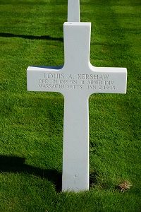 Pfc Louis A. Kershaw enlisted in Boston, Massachusetts on 22 October 1942.Source of information: André Koch, www.abmc.gov, www.wwiimemorial.com, www.archives.gov – WWII Enlistment Record, www.ancestry.com - 1910/1920/1930/1940 Census / Headstone and Interment Record / U.S. WWII Draft Cards Young Men, 1940-1947 / Massachusetts, Birth Records, 1840-1915, http://www.11tharmoreddivision.com