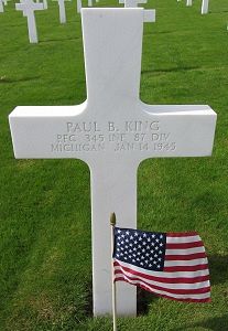 Pfc Paul B. King attended high school for four years before he enlisted in Kalamazoo, Michigan on 23 March 1942.He was first buried at the Temporary American Military Cemetery in Grand Failly, France.
