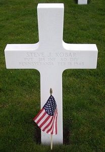 Pvt Steve J. Kobar attended high school for one year and worked in a glass producing factory before he enlisted in New Cumberland, Pennsylvania on 23 June 1944. He was sent overseas in December 1944.He was killed by artillery shell fragments in his face.