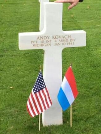 Pvt Andy Kovach was first buried at the Temporary American Military Cemetery of Grand Failly, France.Source of information: André Koch, Terry Hirsch, www.abmc.gov, www.wwiimemorial.com, www.ancestry.com - 1930 Census / Wayne Langolf’s Family Tree / Headstone and Interment Records / WWII Draft Card
