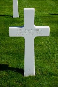 Pfc Alex Kovalchuk attended high school for two years before he enlisted.Source of information: Peter Schouteten, www.abmc.gov, www.wwiimemorial.com, www.ancestry.com - Headstone and Interment Record / 1940 Census / U.S. WWII Draft Cards Young Men, www.findagrave.com