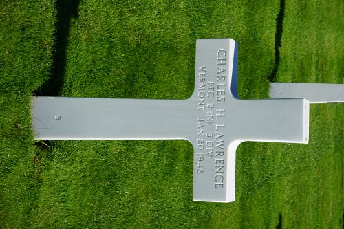 Pfc Charles H. Lawrence enlisted in Rutland, Vermont on 22 November 1943.He attended 1 year at the Black River High School in Ludlow and worked on a farm before he enlisted.