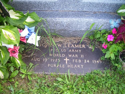 Pfc John W. Leamer Jr worked on a farm before he enlisted in Pittsburgh, Pennsylvania on 7 August 1944.He is remembered at the East Ridge Cemetery in Westover, Clearfield County, Pennsylvania.