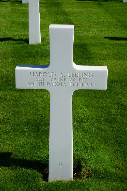 Sgt Harold A. Leeling was a lumberman before he enlisted at Fort Snelling, Minnesota on 29 February 1944.Source of information: Leo Minne, www.abmc.gov, www.wwiimemorial.com, www.ancestry.com - 1930/1940 Census / Headstone and Interment Record / U.S. WWII Hospital Admission Card File / U.S. WWII Draft Cards Young Men / Jeanette Key Jacobsen Family Tree, www.80thdivision.com