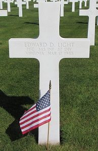Pfc Edward D. Light attended high school for one year and was a smith and sheet metal worker before he enlisted in Roanoake, Virginia on 16 February 1943.Source of information: Peter Schouteten, www.abmc.gov, www.wwiimemorial.com, www.archives.gov - WWII Enlistment Record, www.ancestry.com - Headstone and Interment Record / U.S. WWII Draft Cards Young Men / 1930 Census, http://87thinfantrydivision.com, www.newspapers.com - The Times Dispatch Virginia 12 April 1945