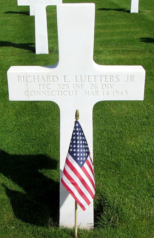 Pfc Richard E. Luetters Jr. attended high school for four years and was employed at the Seymour Manufacturing Company.He enlisted in Hartford, Connecticut on 20 February 1943. He was selected for the Army Specialized Training Program (A.S.T.P.) and studied at Providence College.