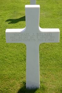 Pfc Michael J. Bielaski was an attendant at a filling station before he enlisted in Springfield, Massachusetts on 3 March 1941.He was first buried at Margraten in a temporary grave on 16 June 1945. He was disinterred on 3 August 1948 and his remains were prepared and placed in a casket on 5 August 1948. He was given his final resting place on 23 December 1948.