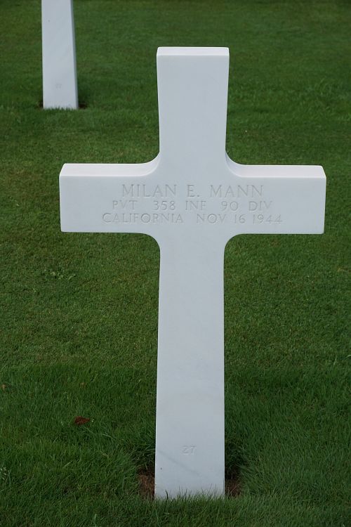 Pvt Milan E. Mann was a driver before he enlisted in San Francisco, California, on 22 January 1944.He was sent overseas in July 1944.
