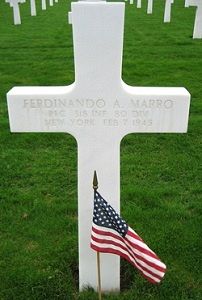 Pfc Ferdinando A. Marro attended high school for three years and was an unemployed carpenter before he enlisted at Camp Upton Yaphank, New York on 22 May 1944.He was killed by artillery shell fragments in his head and face.